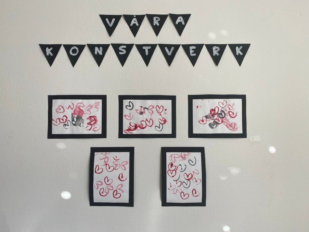 Varje mĂ„nad har vi olika inspirationsbilder dĂ€r barnen skapar olika konstverk đ i februari hade vi hjĂ€rtan â„ïž