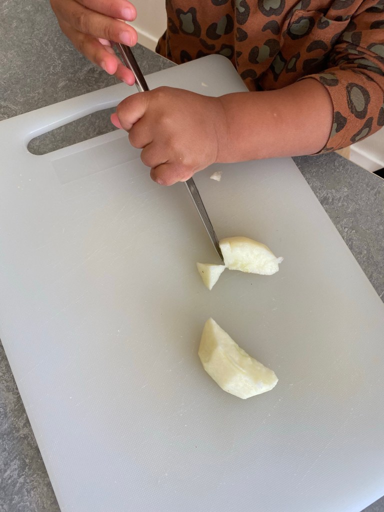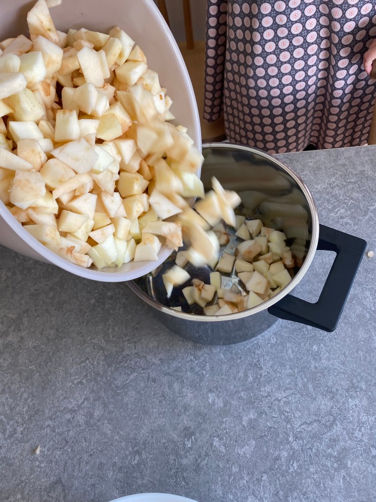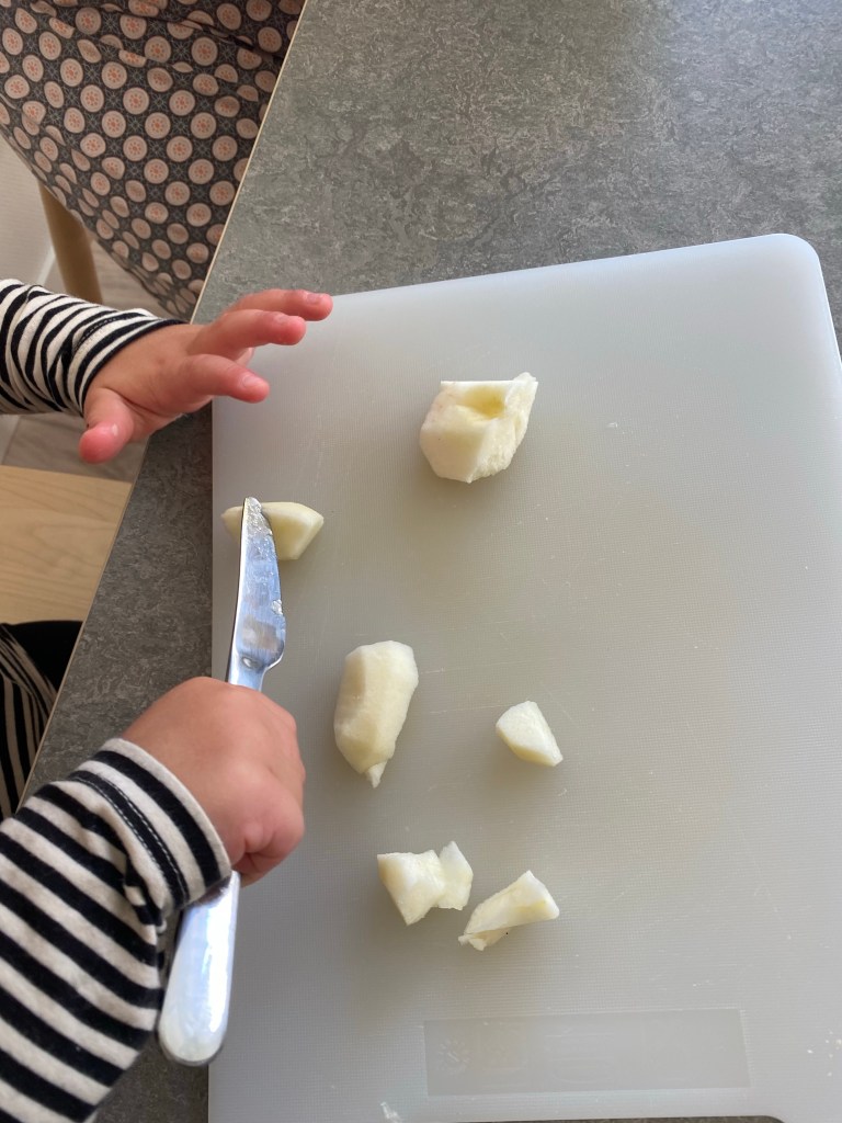 Idag gjorde vi eget Ă€ppelmos av alla Ă€pplen vi fick förra veckan đ barnen fick hjĂ€lpa till att dela alla Ă€pplen i mindre bitar och efter en stund var Ă€ppelmoset klart đđ»