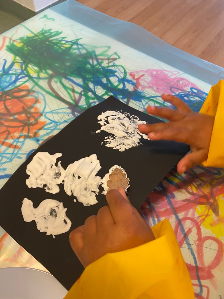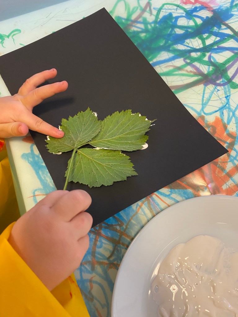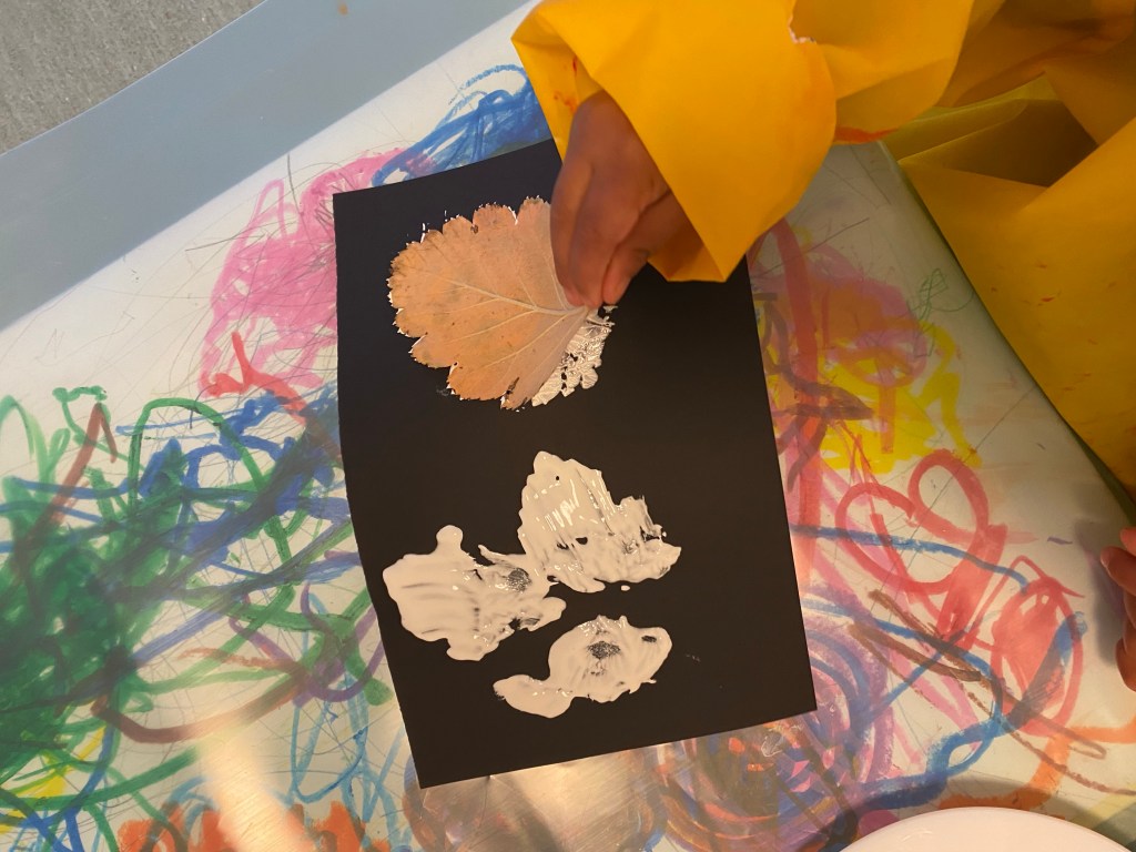 Spöken med hjĂ€lp av vit fĂ€rg och olika sorters löv đ