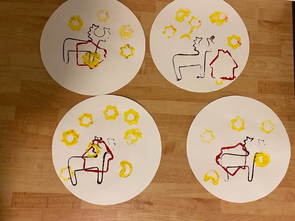 Nissen kom med julpyssel och barnen gjorde varsin julkula😍